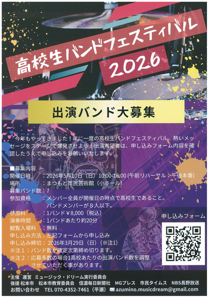 「高校生バンドフェスティバル2026」開催!
